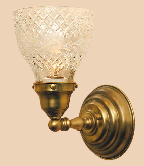 This light is a simple yet very popular model. Shown in antique brass with custom crystal cut glass. Mount it up or down as your design taste is suited. Up next, the matching two lighting version.